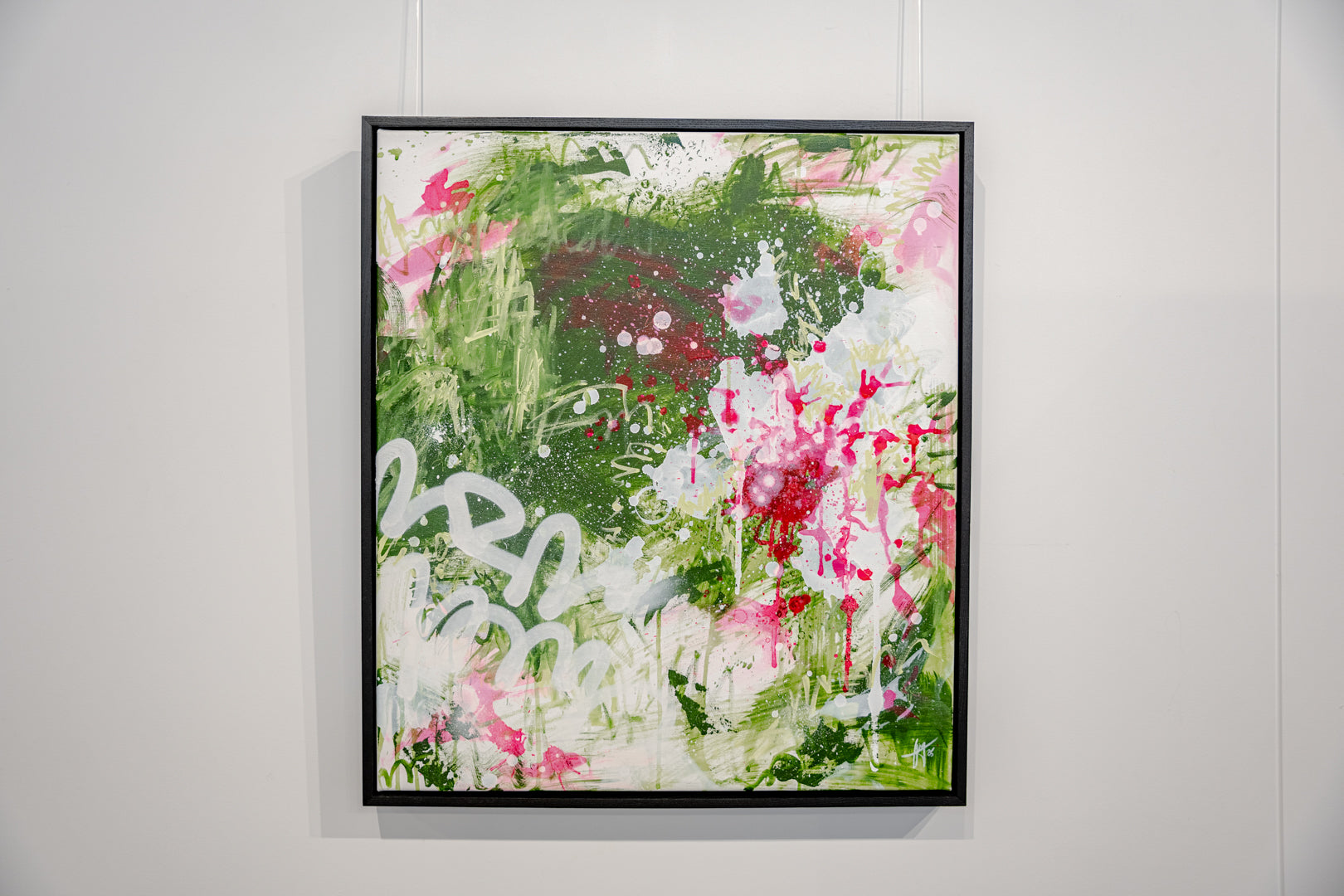 Acrylic, acrylic ink, alcohol ink, & spray paint on canvas (framed).