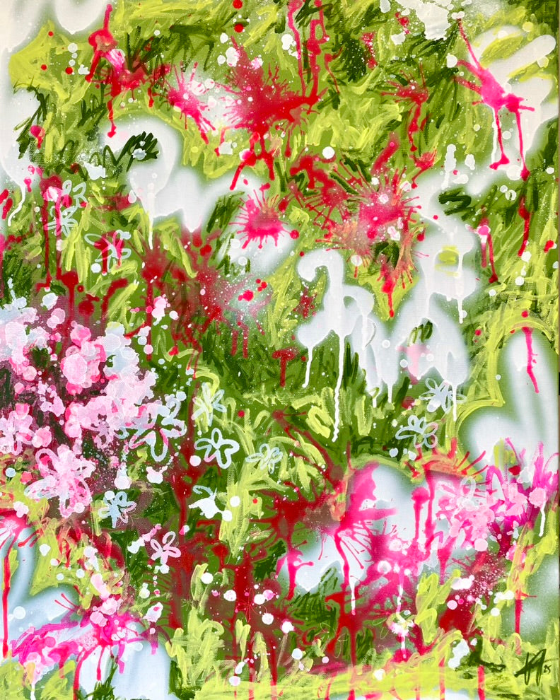 Acrylic, acrylic ink, alcohol ink, & spray paint (unframed).
